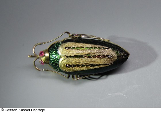 Käferkörper Gold, tordierter Draht, 2 Saphire. |