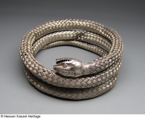 Silberner Armreif in Form einer geringelten Schlange |