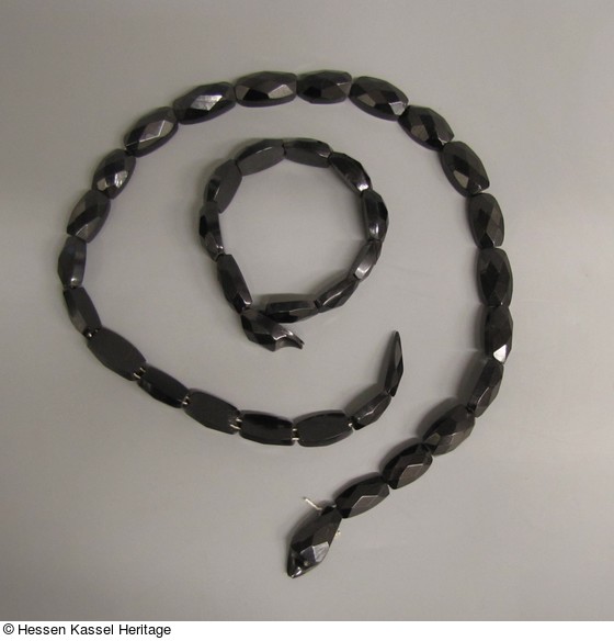 Halskette und Armband mit Jetperlen in Form einer Schlange |