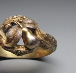 Kupfervergoldeter Armreif in Form eines naturalistischen Astes mit einer plastischen Birne |