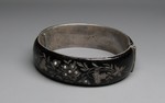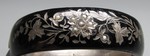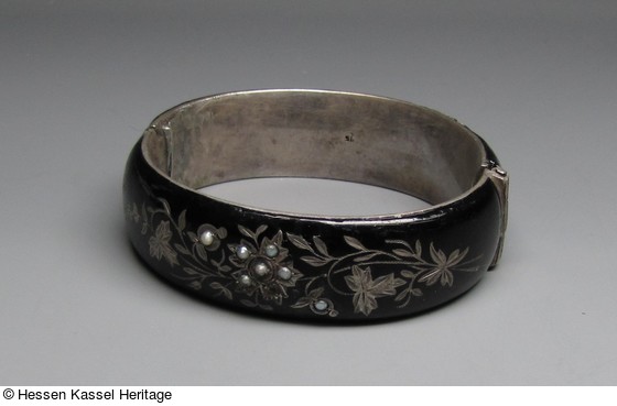Silberner Armreif mit zwei Blütenzweigen auf schwarzem Emailgrund (Trauerschmuck) |