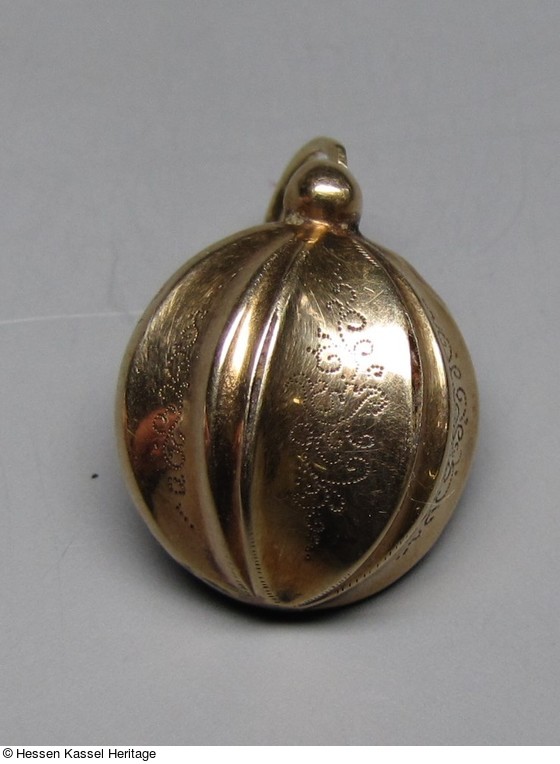 Silbervergoldeter Ohrring in Form einer halbkugeligen Frucht |