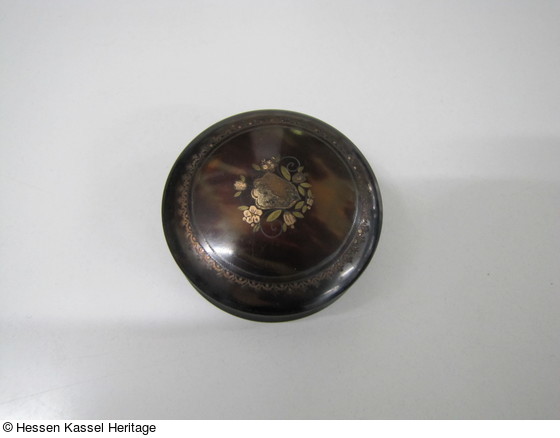 Rundes Döschen aus Schildpatt mit Pikée-Einlage |