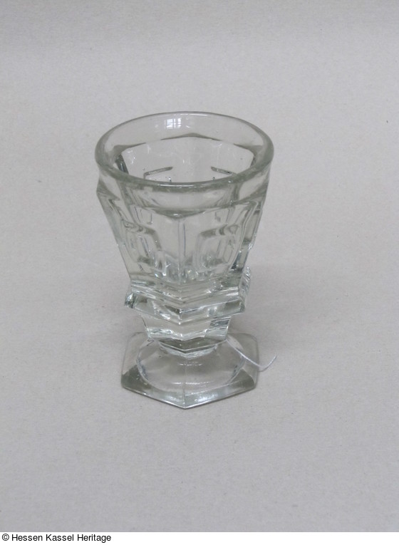 Farbloser Preßglas-Fußbecher in Nachahmung böhmischer Biedermeier-Schliffgläser |