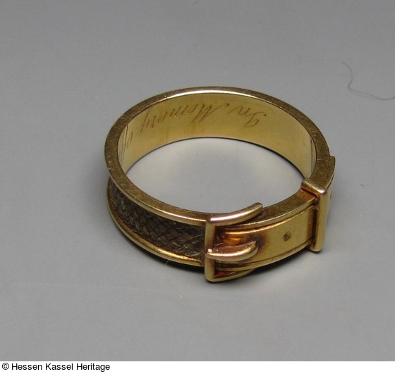 Silbervergoldeter Gedenkring in Form eines geschlossenen Riemens mit Haarbesatz |