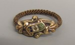 Haarring mit silbervergoldetem Kopf und den Symbolen von Glaube, Liebe, Hoffnung