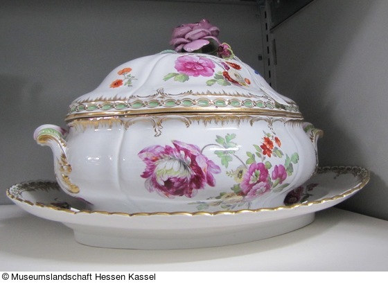 Porzellan, Aufglasurmalerei, Goldstaffage. |