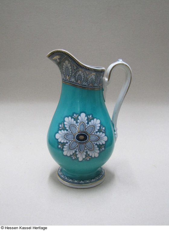 Kännchen mit gedrucktem Dekor und farbiger Bemalung von Hand |