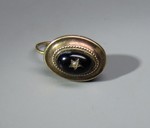 Silber gedrückt, vergoldet. Schwarzes Email, kleine halbe Perle. |