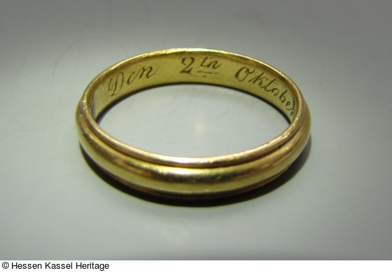 Goldener Ehering mit Gravur innen "C. J. Den 2ten Oktober 1842" |