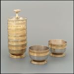 gesamt 2326,1 g (Gewicht) Grundbecher (1) 6- 6,4 cm (Höhe) Grundbecher Lippe 9,1 cm (Durchmesser) Grundbecher Fuß 7,4 cm (Durchmesser) Grundbecher 286 g (Gewicht) Becher (2) 6- 6,1 cm (Höhe) Becher (2) Lippe 9 cm (Durchmesser) Becher (2) Fuß 7,4 cm (Durchmesser) Becher (2) 255,5 g (Gewicht) Becher (3) 6,3 cm (Höhe) Becher (3) Lippe 9 9,1 cm (Durchmesser) Becher (3) Fuß 7,5 cm (Durchmesser) Becher (3) 268,6 g (Gewicht) Becher (4) 6,2 cm (Höhe) Becher (4) Lippe 9 9,2 cm (Durchmesser) Becher (4) Fuß 7,5 cm (Durchmesser) Becher (4) 267,8 g (Gewicht) Becher (5) 6,2 cm (Höhe) Becher (5) Lippe 9- 9,1 cm (Durchmesser) Becher (5) Fuß 7,5 cm (Durchmesser) Becher (5) 264,2 g (Gewicht) Becher (6) 6,2- 6,3 cm (Höhe) Becher (6) Lippe 9,1 cm (Durchmesser) Becher (6) Fuß 7,5 cm (Durchmesser) Becher (6) 265,2 g (Gewicht) Becher (7) 6,1- 6,3 cm (Höhe) Becher (7) Lippe8,9- 9,2 cm (Durchmesser) Becher (7) Fuß 7,5 cm (Durchmesser) Becher (7) 269,4 g (Gewicht) Becher (8) 6- 6,2 cm (Höhe) Becher (8) Lippe 9 cm (Durchmesser) Becher (8) Fuß 7,5 cm (Durchmesser) Becher (8) 261,2 g (Gewicht) Deckel gesamt 4,8 cm (Höhe) Deckel sichtbar 4,3 cm (Höhe) Deckel:Stiel/Knauf 3,6 cm (Höhe) Deckel 9,9 cm (Durchmesser) Knauf 3,6 cm (Durchmesser) Deckel 188,9 g (Gewicht)