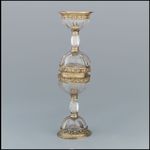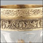 Silber, gegossen, getrieben, punziert, geätzt, vergoldet; Bergkristall, geschliffen, poliert |