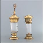 Silber, gegossen, getrieben, graviert, punziert, geätzt, vergoldet; Bergkristall, geschliffen, poliert; Stein |