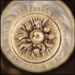 Bergkristallpokal mit Fruchtbündel auf dem Pokalboden |