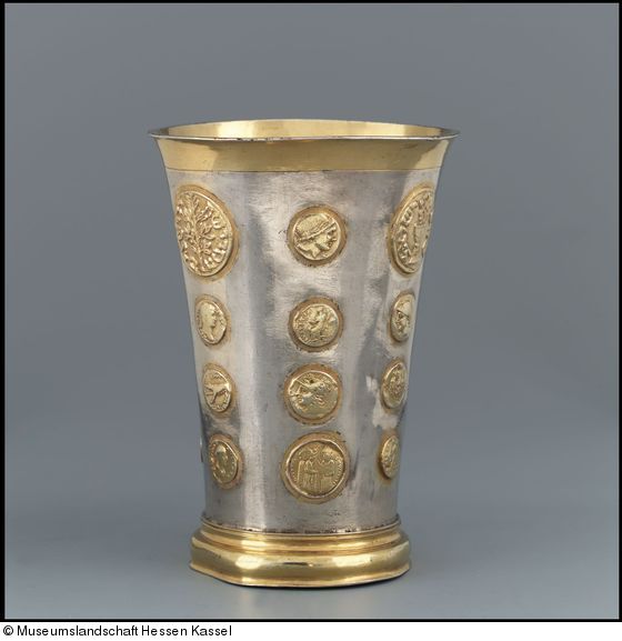 Silbervergoldeter Münzbecher mit antiken Münzen "Becher Augusts des Starken"