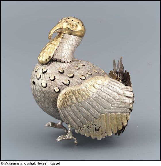 Naturnah gestaltete Tierplastiken erfreuten sich um 1600 besonderer Beliebtheit. Manche Figuren, wie der durchbrochen gearbeitete Truthahn, dienten als Räuchergefäß.