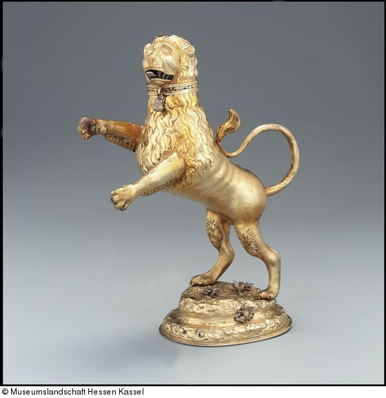 Silber, gegossen, getrieben, graviert, punziert, ziseliert, vergoldet; Reste von Kaltbemalung |