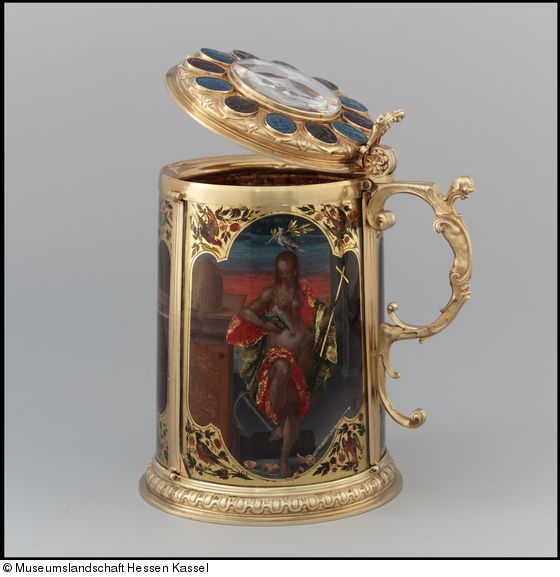 Einem erst vor wenigen Jahren im Schweriner Landesarchiv entdeckten, leider undatierten „Verzeichnis der Juwelen, des Silbergeschirrs und verschiedener Kunstsachen“ aus dem Besitz Elisabeths ist zu entnehmen, dass ihre kostbare Sammlung nicht nur der Aussteuer oder fürstlichen Geschenken zu verdanken war, sondern dass sie viele Objekte auch selbst erworben hatte. Der Vermerk „Ein Kristal Kan mit silber Verguldt eingefast und gemahlt hat mir mein hertzlieber Bruder Landgraff Philips Verehrt“ (Kat. Güstrow 2006, S. 148) bezieht sich möglicherweise auf den in Rede stehenden Humpen.