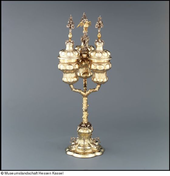 Zu den Kostbarkeiten aus Silber oder Gold, die der landgräflichen Familie vornehmlich der Repräsentation oder Vermögensanlage dienten, gehörten Prunkpokale. Sog. Buckelpokale mit diamantartiger Oberfläche waren eine Spezialität der Nürnberger Goldschmiede.