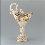 Elfenbein, geschnitzt, gedrechselt, poliert; Silber, getrieben, punziert, vergoldet |