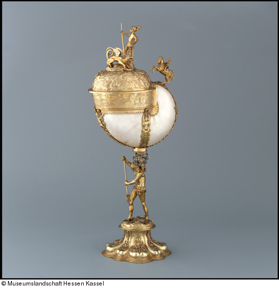 Seit dem 16. Jh. gelangten Kokosnüsse, Straußeneier und Nautilusschalen durch portugiesische und später holländische Handelskompanien aus den fernsten Gegenden der Welt nach Europa. Entsprechend ihrer Rarität und Kostbarkeit erhielten sie oft aufwendige Goldschmiedefassungen.