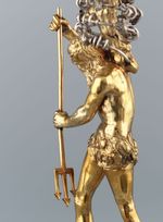 Silber, gegossen, getrieben, graviert, punziert, geätzt, gesägt, vergoldet; Nautilus mit freigelegter Perlmutterschicht und Wirbelfrontfreischnitt |