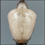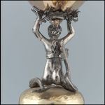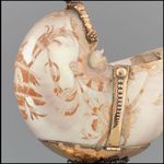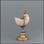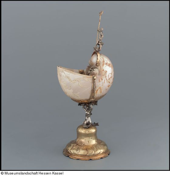 Silber, gegossen, getrieben, graviert, punziert, vergoldet; Nautilus mit Flachreliefschnittzerei |