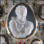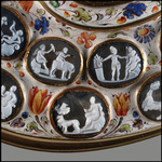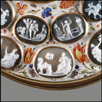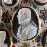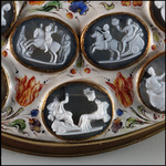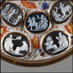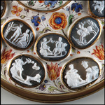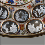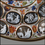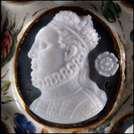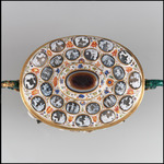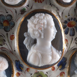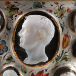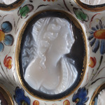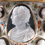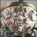 Gold; transluzides und opakes Email; Achat- und Sardonyxkameen; Muschel |