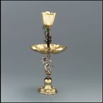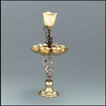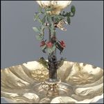 Silber, gegossen, getrieben, graviert, gelötet, punziert, ziseliert, vergoldet, bemalt; Bemalung in den Farben Grün und Rot |