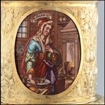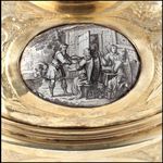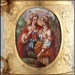 Silber, gegossen, getrieben, ziseliert, vergoldet; Emailmalerei auf Kupfer |