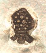 Silber, gegossen, getrieben, graviert, ziseliert, vergoldet; kalt bemalt; Achat, geschliffen, poliert, wahrscheinlich Region Freisen, südlich von Idar-Oberstein (Hinweis Hr. Holzhey) |