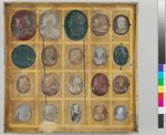 - Verzeichniß der aus der Gemmen=Sammlung in den Preziosenschrank versetzten geschnittenen Steine und Muscheln, die unterstrichenen sind nicht gefaßt, Cassel, den 19. April 1881. A. Lenz. SMK, Archiv HLM. 1881, Nr. IV. 130.