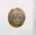Eine ähnliche Darstellung mit dem Haupt Christi, jedoch mit überlängter Gesichtsform, befindet sich in Paris (Babelon 1897, Nr. 413). Ein verwandter Typus, allerdings als Vera Icon, der Christus-Kopf vor dem Hintergrund des Schweißtuchs der Veronika, befindet sich in der Münzsammlung in München (Weber 1992, Nr. 115). Weber übernimmt Wentzels Zuordnung "Ende 14. Jh. oder um 1400. Französisch?" nicht. Sie spricht zwar von einem Vorbild des 14. Jahrhunderts, datiert aber das Stück ins "1. Viertel 17. Jahrhundert" und schreibt es der "Werkstatt des Ottavio Miseroni, Prag" zu. Bei dem hier besprochenen Steinschnitt sprechen die ornamentale Auffassung der Haarbehandlung und der schwere Augentypus für die Miseroni-Werkstatt.