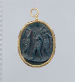 Ein verwandter Kameo in derberer Form befindet sich in St. Petersburg (Kagan 1973, Nr. 56) und wird dort als "16. Jahrhundert und deutsch" eingeordnet. Weniger ähnlich die beiden Darstellungen der Geißelung Christi aus Chalcedonachat bei Eichler/Kris und bei Dalton (Eichler/Kris 1927, Nr. 163; Dalton 1915, Nr. 21).