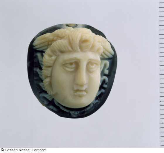 Horst Ulbo Bauer (Bauer 1963, Nr. 19, Abb. S. 41) bespricht eine römische Medusenkamee nach einem hellenistischen Original. Die hier besprochene Kamee ist etwas steifer und im Ausdruck zurückgenommener. Ähnliche Medusenkameen sind sehr verbreitet, eine besonders große Anzahl befindet sich in St. Petersburg (Neverov 1988, S. 130ff.).