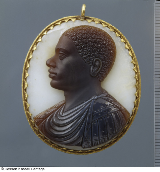 Weber datiert einen Münchner Kameo mit einem "Brustbild eines Negers" ins frühe 17. Jahrhundert (Weber 1992, Nr. 180). Der Kasseler Kameo ist im Typ des Profilporträts (die Mohrendarstellungen sind häufiger frontal dargestellt) zwar ähnlich, aber wegen seiner Strenge sicherlich früher zu datieren.
