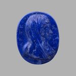 Eine ähnliche Typisierung des weiblichen Brustbilds mit Umhangtuch zeigt die Kamee B XVI. Tab. B-V-20 aus Malachit. Bei Reinach (Reinach 1895, Taf. 14, I, 27,8) wird für diesen Frauentypus eine Benennung als "Livia" vorgeschlagen, wobei an "Livia als Artemis/Ceres" gedacht werden kann.