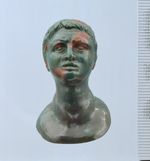 Die hier besprochene Kleinskulptur läßt sich wie ihr Parallelstück aufgrund der geringen individuellen Physiognomie nicht identifizieren. Beide Objekte dürften auf Fernwirkung konzipiert sein und waren wohl Teile eines Dekorationsprogramms. Beide Kopfbüsten waren wohl eher Charakterköpfe als Porträts.
