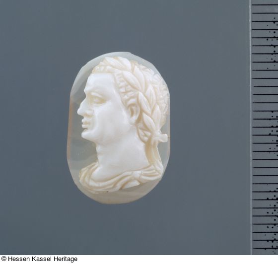 Möglicherweise gehört der Kameo zu einer Imperatorenserie. Derartige Serien waren sehr verbreitet und zu dekorativer Verwendung bestimmt; so ist bekannt, daß Heinrich IV. von Frankreich solch eine Imperatorenserie als Mantelknöpfe verwendete (Eichler/Kris 1927, Nr. 357-368).