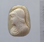 Diese Kamee läßt sich einer Gruppe von Kameen zuordnen, die anhand des elfenbeinfarbenen Materials mit leichter Roséfärbung und der flüchtigen Schnittechnik zu identifizieren sind. Als Vergleichsstück wäre beispielhaft eine Minerva-Kamee der Münchner Münzsammlung zu nennen (Weber 2001, Nr. 149).