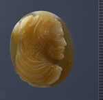 Der Stein hat eine charakteristisch honigartig-braune Farbe mit elfenbeinfarbenen Partien an Gesicht und Schulteransatz. Die Rückseite des Steines ist unregelmäßig abgekantet. Daraus kann man schließen, daß der Kameo irgendwo eingelassen war.