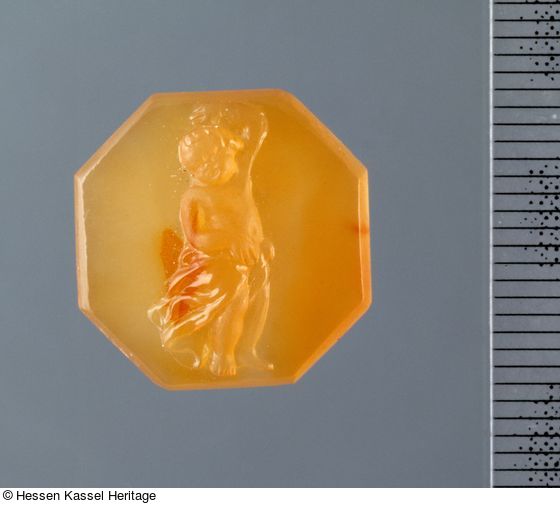 Die Anlehnung an die größeren Kasseler Cupido-Kameen auf Tablar B-VI (B XVI. Tab. B-VI-1 und B XVI. Tab. B-VI-12), die Meyer ausführlich bespricht (Meyer 1973, G-3 und G-4) ist auffällig und spricht ebenfalls für eine Entstehung in der Kasseler Hofwerkstatt um 1700.
