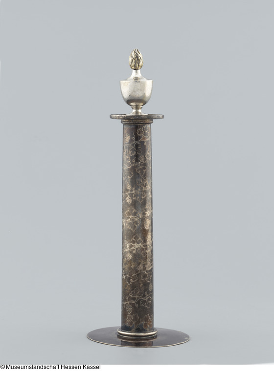 Der silberne Aufsatz für die Thorarolle wurde in der jüdischen Gemeinde in Kassel verwendet. 1940 kaufte ihn das Hessische Landesmuseum im Landesleihhaus Kassel an. Er stammt sehr wahrscheinlich aus der Edelmetallzwangsabgabe eines nicht mehr zu identifizierbaren jüdischen Besitzers.