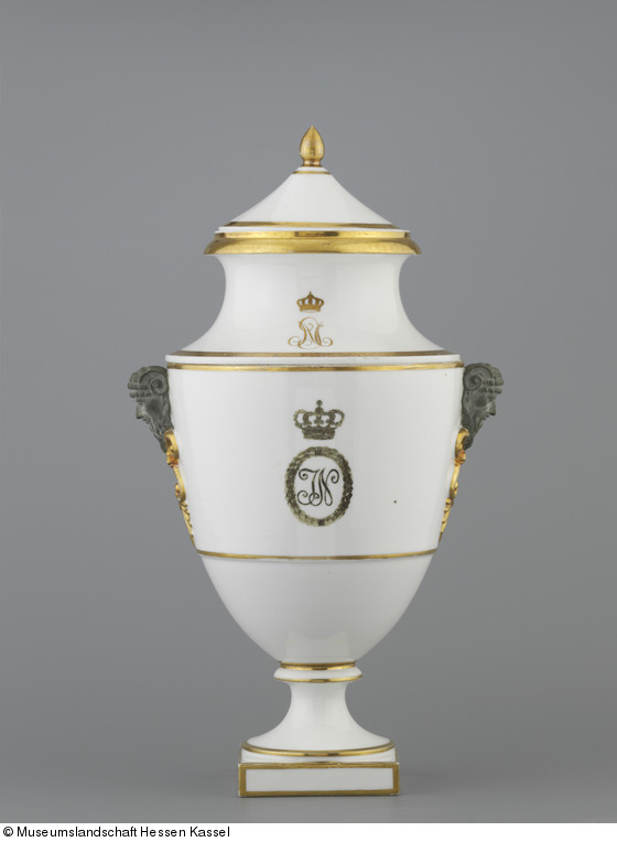 Deckelvase mit Maskengriffen und bekröntem Monogramm der Initialen JN (Jérôme Napoléon) |