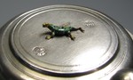 Fayence, glasiert; Fassung: Silber, vergoldet, Echse emailliert |