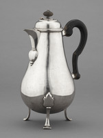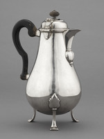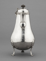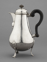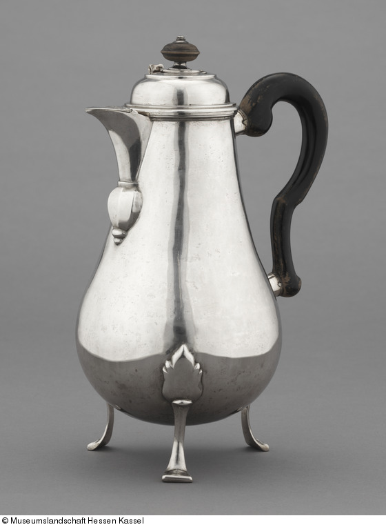 Die Schokoladenkanne von Louis Rollin weist die typischen Bestandteile auf, die für die Zubereitung der Trinkschokolade erforderlich waren. In den seitlich aufklappbaren Deckel ist ein kleiner Schieber eingearbeitet, der mit dem Ebenholzknauf betätigt wird. Hier wurde ein Quirl eingeführt, mit dem die Schokolade aufgeschäumt und unter ständigem Erhitzen mit Wasser, Milch, Rotwein und Aromen oder Gewürzen verrührt wurde. Die birnenförmige Kanne mit nur wenigen dekorativen Elementen ist ein typisches Beispiel für die charakteristische Schlichtheit von Silberarbeiten hugenottischer Prägung des 18. Jahrhunderts in Kassel.