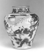 Schultertopf mit Hofdamen und Kindern in Gartenlandschaft |