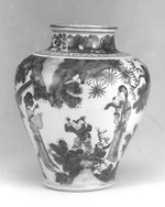 Schultertopf mit Hofdamen und Kindern in Gartenlandschaft