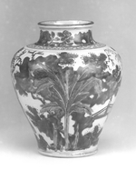 Porzellan; Unterglasur-Kobaltblau und Aufglasurfarben Grün, Aubergine, Schwarz und Eisenrot |