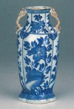 Henkelvase mit den Blumen der vier Jahreszeiten: Pflaume, Paönie, Lotos und Chrysantheme